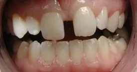 Before: Patient needs a Single Tooth Replacement of one Upper Central Incisor.